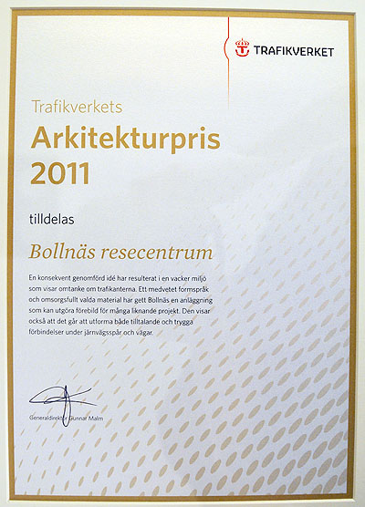 Bollnäs Resecentrum fick Trafikverkets arkitekturpris 2011.