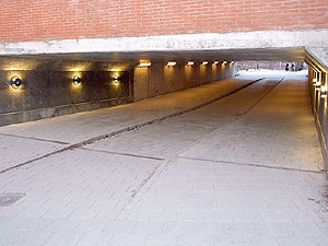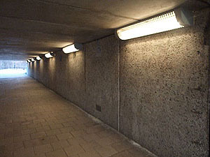 Ny vandalsäker belysningslösning i gångtunnel under Magelungsvägen. 2006. Beställare: Trafikkontoret/Sören Spetz. Elkonsult: Alteco/Joachim Åhman. Elentreprenör: Electro Sandberg. Foto: Michael Hallbert Tillbaka |