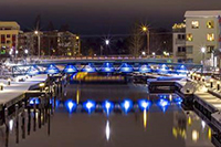Konstnärsnämnden, ombyggnad av huvudkonor Maria Bangat i Stockholm. Ark. John Robert Nilsson Arkitektkontor. | Glasobelisken Sergels Torg, Framtagning av ny belysningslösning i samband med renovering av glasobelisken vid Sergels Torg. Ny anläggning invigs 2017. | Belysning av bro över Norrboån i Delsbo. Beställare: Peab AB, Robert Söderberg. |