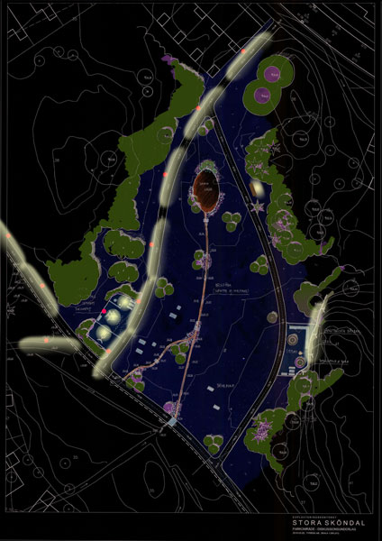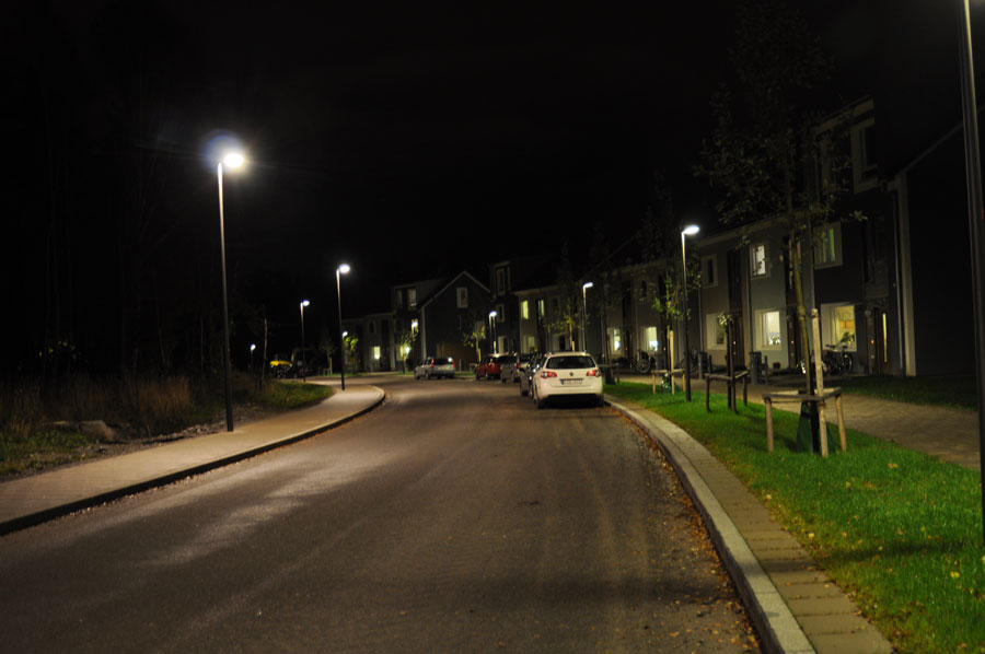 Exteriör belysningsplanering av nybyggt bostadsområde.